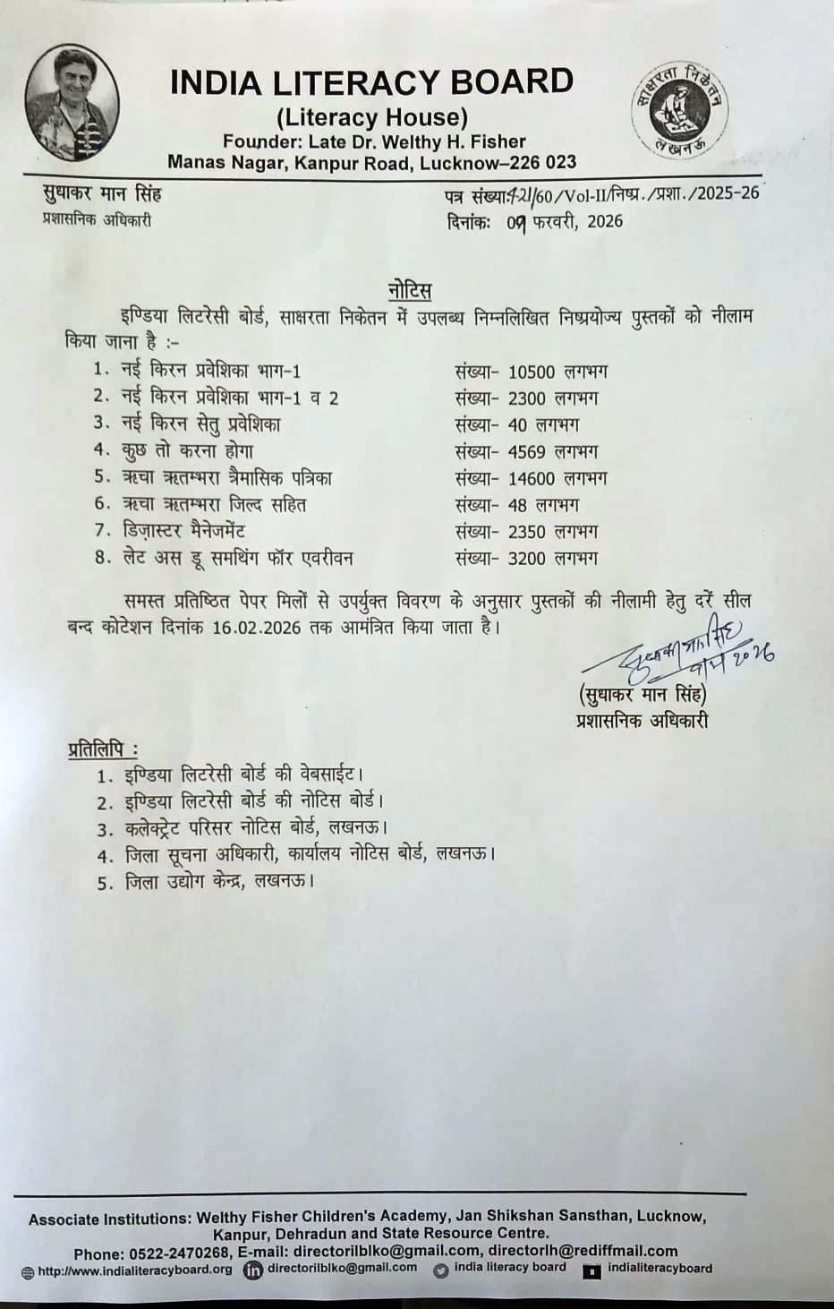 It was a momentous rendezvous with Mahatma Gandhi, a few weeks before his tragic assassination, which changed life of Dr. (Mrs.) Welthy H. Fisher, an American lady who had lived in India for several years. Mahatma Gandhi exhorted her to serve India through its villages. This exhortation had its electrifying effect on Mrs. Fisher. Though she returned to America shortly after Gandhiji's death, she returned to India after disposing of her property. She launched a crusade against illiteracy in rural India by preparing workers for adult education in a small space at Agriculture Institute, Naini, Allahabad from February, 1953. She worked there for three years.