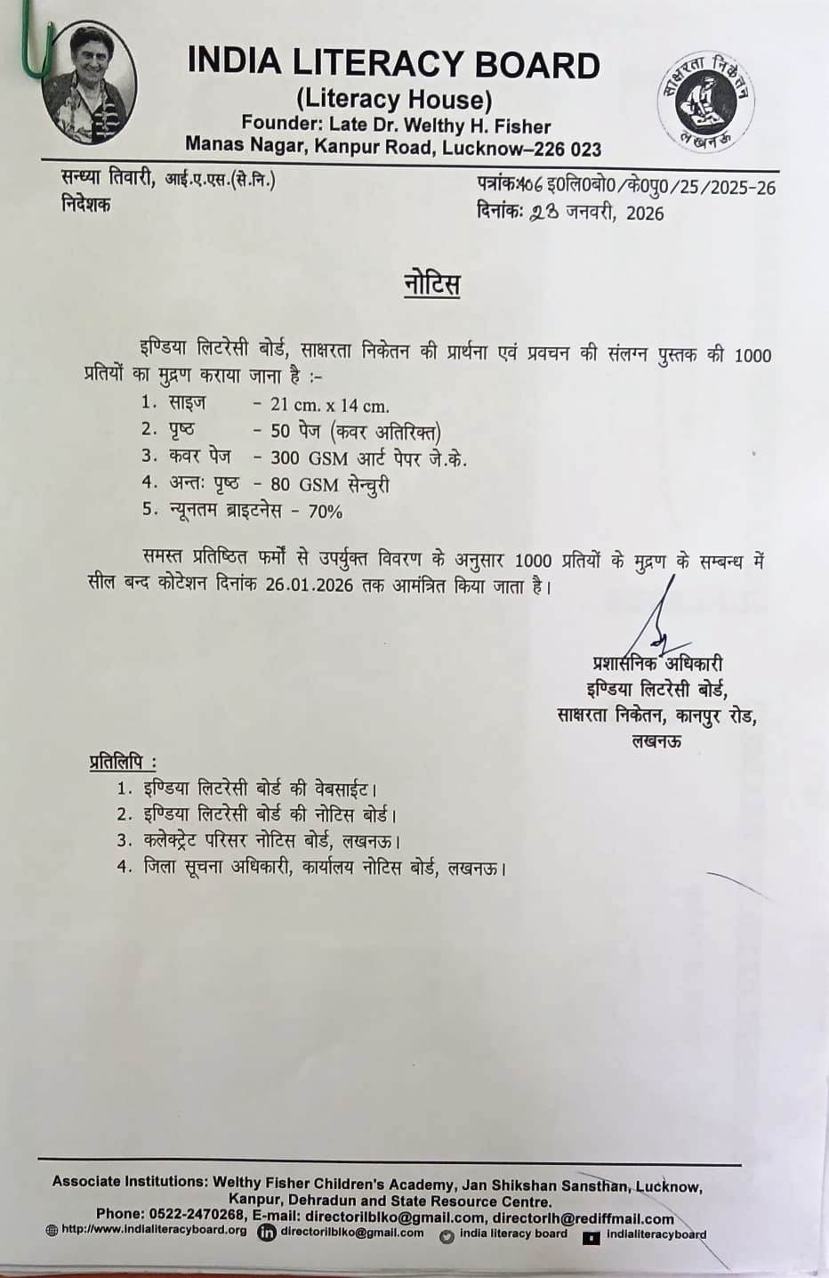 It was a momentous rendezvous with Mahatma Gandhi, a few weeks before his tragic assassination, which changed life of Dr. (Mrs.) Welthy H. Fisher, an American lady who had lived in India for several years. Mahatma Gandhi exhorted her to serve India through its villages. This exhortation had its electrifying effect on Mrs. Fisher. Though she returned to America shortly after Gandhiji's death, she returned to India after disposing of her property. She launched a crusade against illiteracy in rural India by preparing workers for adult education in a small space at Agriculture Institute, Naini, Allahabad from February, 1953. She worked there for three years.